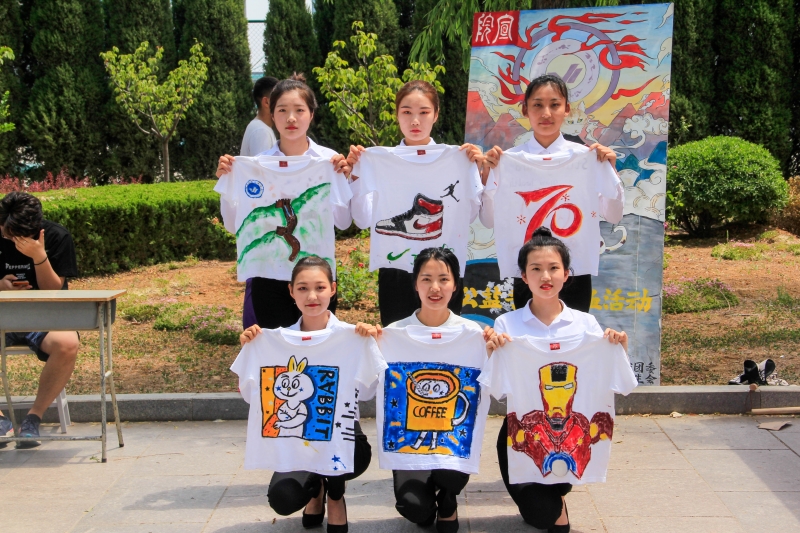 5月25日,“喜迎建国七十周年”系列活动之“关爱留守儿童,我们在一起”主题公益手绘T恤活动在餐厅甬道前举办。参与者用画笔为空白的T恤插上彩色的翅膀,下笔间倾注了浓浓的心意和祝福。现场还有专门为毕业生准备的素色长卷,毕业生纷纷在长卷上绘画、留言,抒发对母校的不舍与眷恋。活动结束后,这些精美T恤将会被捐赠给枣庄市山亭区山城街道刘庄小学,给留守儿童献上一份温暖。