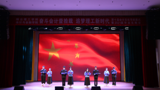 2021年6月8日晚6:30,“奋斗会计壹拾载,追梦理工新时代”第十届会计文化节闭幕式暨毕业生晚会在三教报告厅举行。烟台理工学院副校长张仁杰、学校工会主席史毅,学工处处长杜娟、会计与金融学院院长孙桂娟、会计与金融学院党总支书记曹钊庆、会计与金融学院副院长孔令一、各学院团总支书记以及会计与金融学院全体教师共度这场青春盛会。