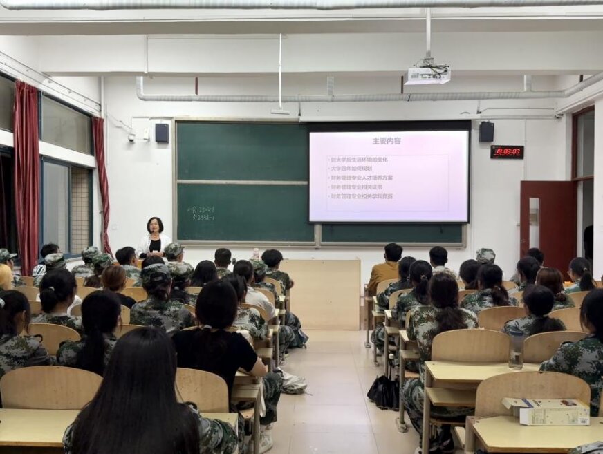 朱淑梅老师和吴丽梅老师围绕专业学习与大学成长进行了细致讲解,为会计学与财务管理专业新生拨开成长迷雾,引导新生更快适应新的学习与生活节奏,助力其明确不同阶段的目标与方向,并清晰阐释了专业学习的核心脉络与能力培养重点。两位老师还详细介绍了专业相关证书和各类竞赛的报考价值与备考要点,为新生搭建起从课堂学习到实践提升的桥梁,使新生的专业成长之路既有清晰指引,也更具前行力量。