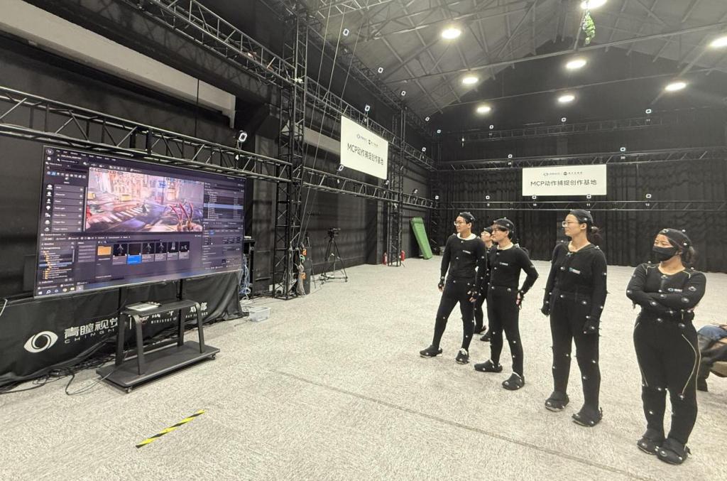 11月3日,建筑工程学院数字媒体艺术系首届毕业班在系主任潘萌、班主任冷涵的带领下赴上海青瞳视觉MCP动作捕捉创作基地开展研学活动。本次活动以“光学动作捕捉技术”为核心,通过理论讲解、实操体验与职业引导相结合的模式,深化学生对数字媒体艺术行业技术应用与职业发展的认知。